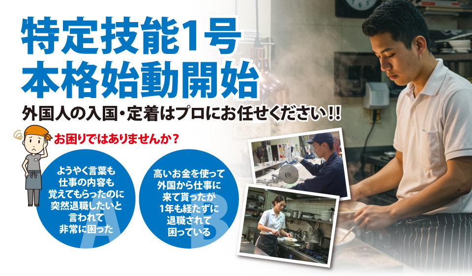 このような背景とノウハウを活かし、特定技能1号での採用・定着支援を全面的にサポートいたします。